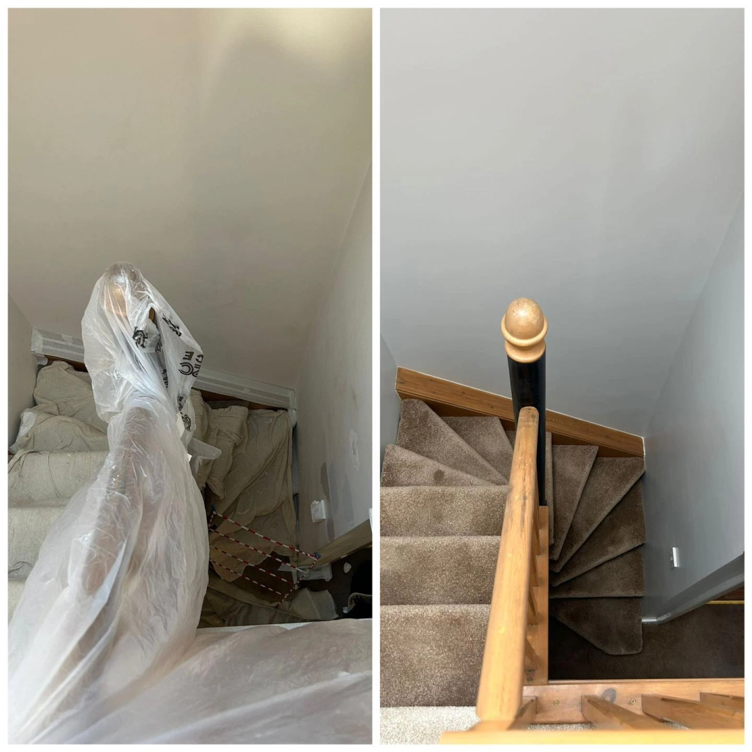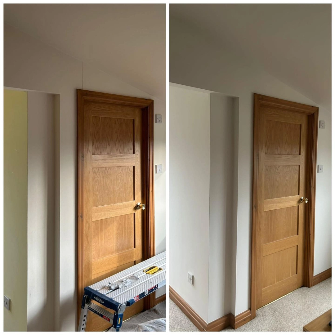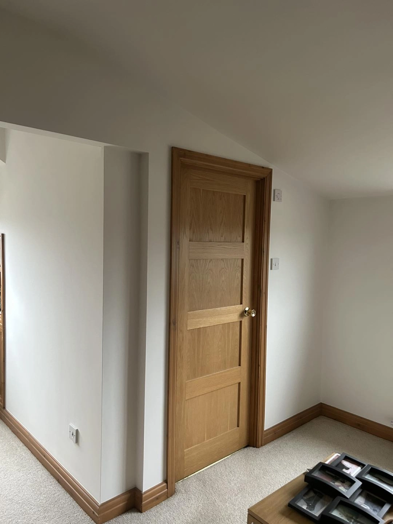 Redecoration of an extension room and hall, stairs, and landing. Walls were filled, sanded, and pain...
