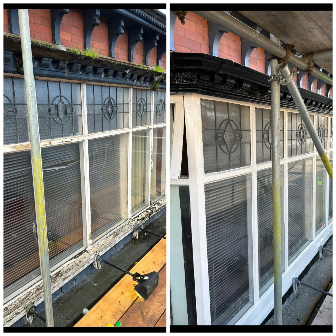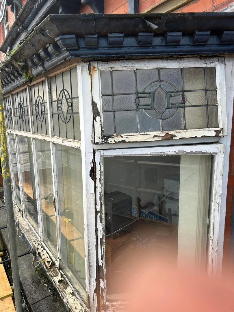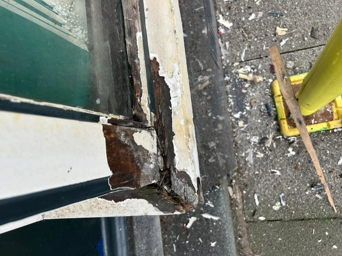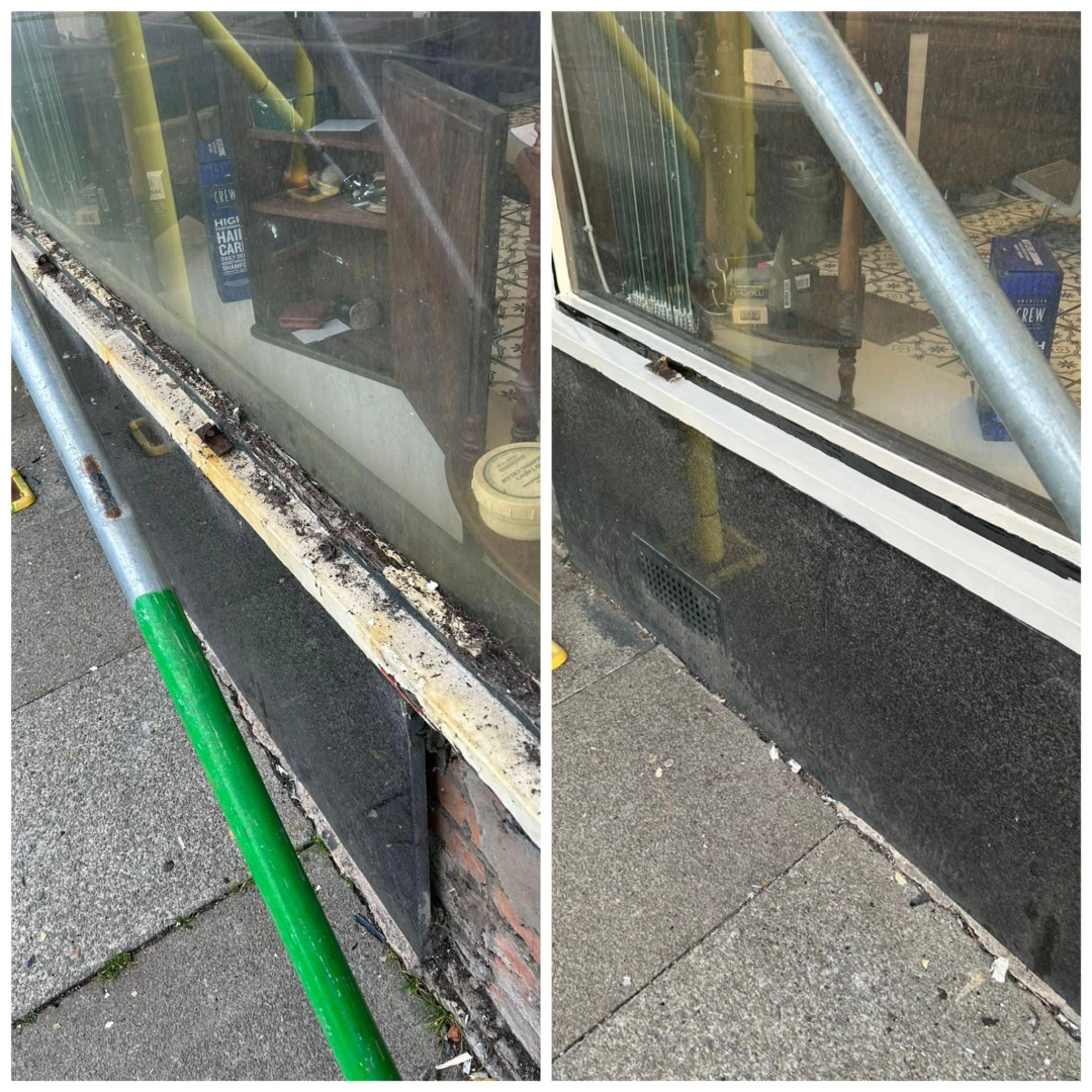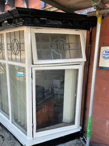 Woodwork restoration and redecoration for a barber shop. Damaged and rotten areas were treated with ...