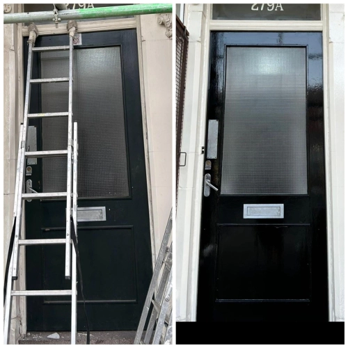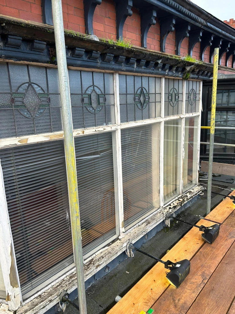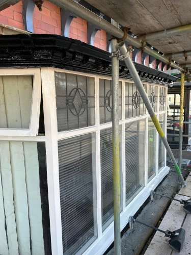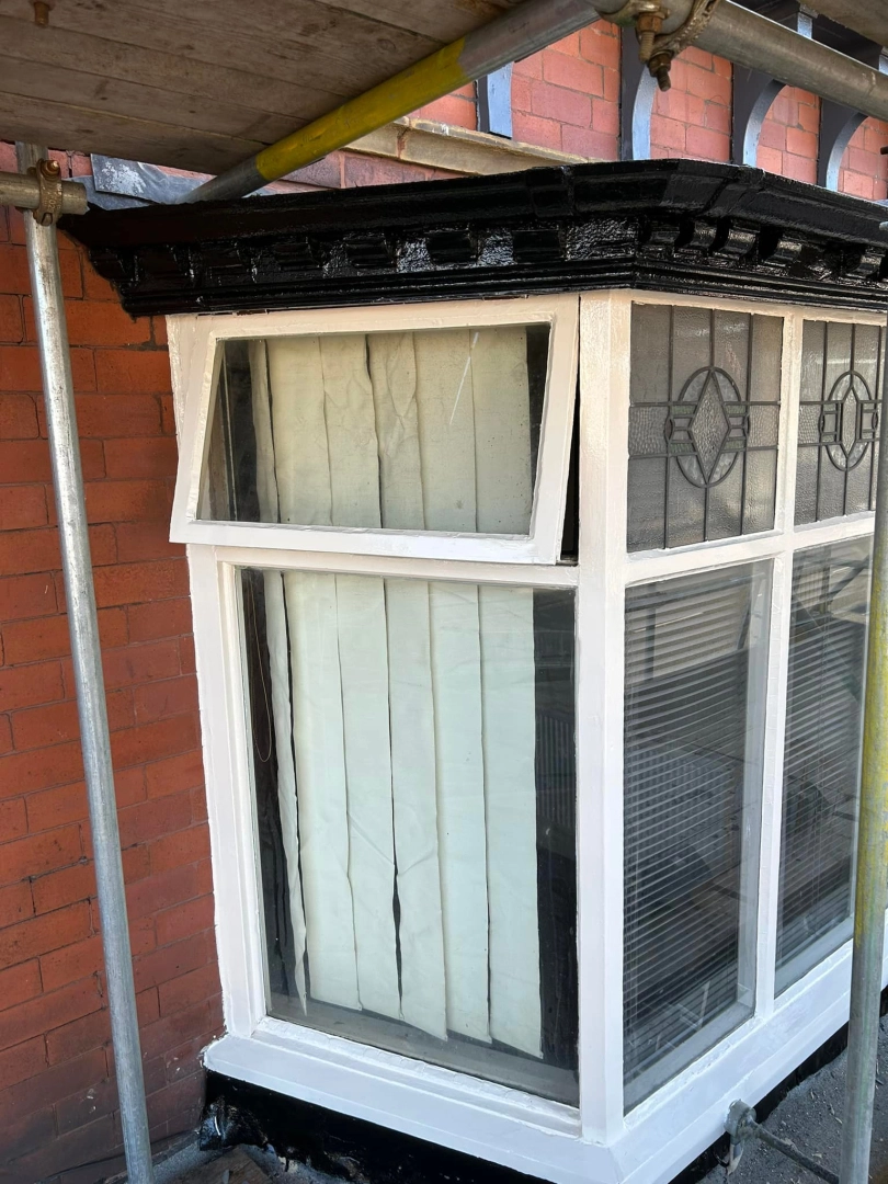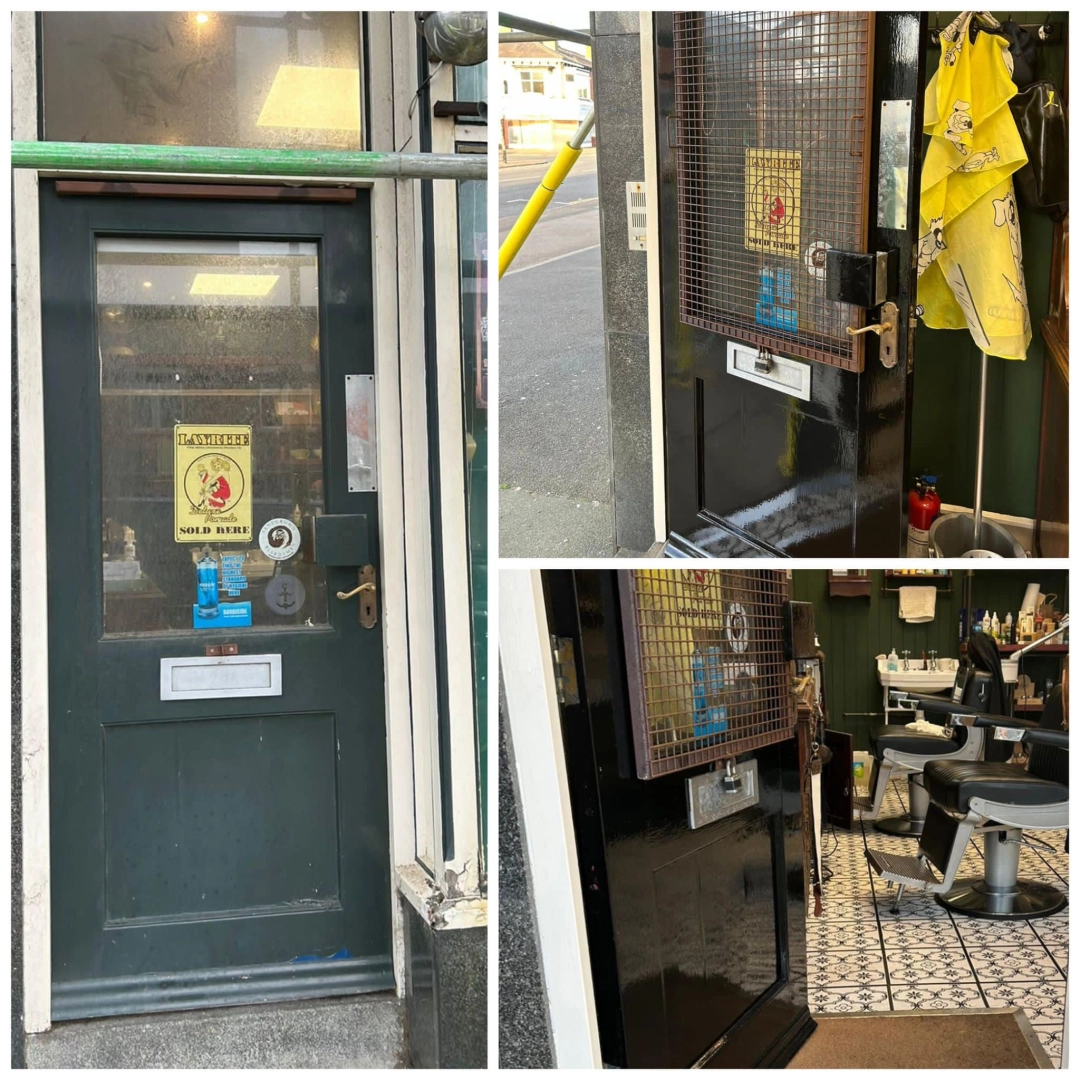 Woodwork restoration and redecoration for a barber shop. Damaged and rotten areas were treated with ...
