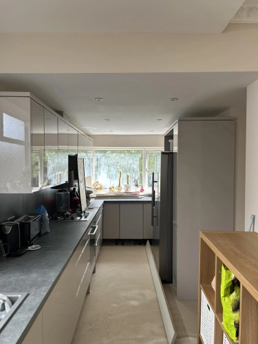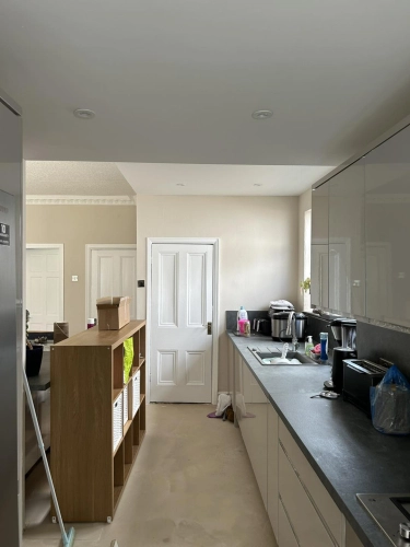 Painting work carried out in a newly fitted kitchen and extension for a returning customer. Helped t...